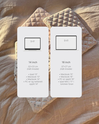 PC Mappe i slitesterkt materiale med blomsterprint, og striper i blå og grønn på innsiden. Praktisk lomme på forsiden. Sømløst fôr, vattert med padding og solid glidelås.